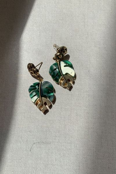 Arete Hoja Acrilico Con Dorado