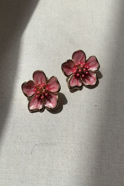 Arete Flor Esmaltado Rosa