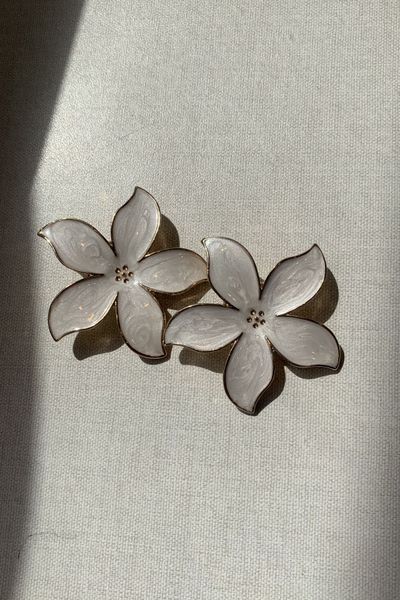 Arete Grande Flor Esmaltado Blanco