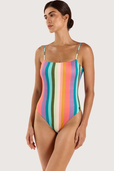 Enterizo con cobertura media, aros fijos, almohadillas removibles, tiras gruesas regulables y espalda con escote profundo.